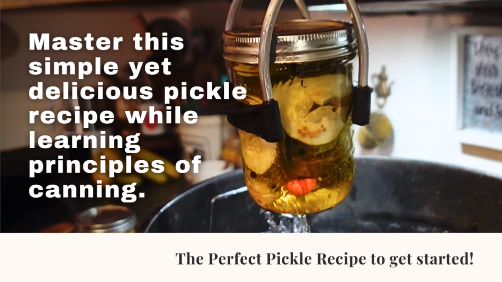 Get hands-on experience as we guide you step-by-step through the water bath canning process. We focus extensively on learning the core process that will translate to nearly every canning recipe you'll ever encounter. As a bonus, we also walk you through step by step instructions to delicious homemade pickles that will impress friends and family alike!